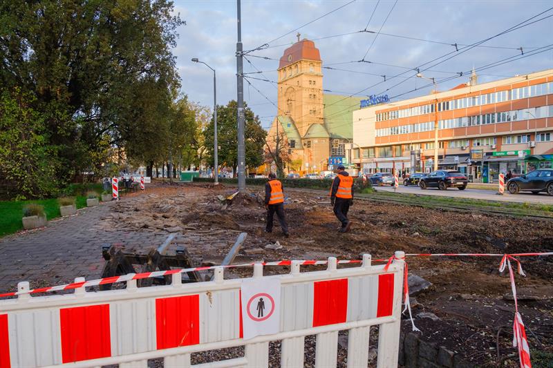 Usunięte też zostały rosnące jeszcze do niedawna wzdłuż obrzeży torów żywopłoty, wyburzono odgradzające pas torowiska od chodnika murki z kamienia. W nowy układ torowy w tym miejscu wkomponowane mają być dodatkowe przystanki na wysokości fontanny i pobliskiego kościoła garnizonowego pw. św. Wojciecha. Prace są częścią trwającej inwestycji drogowej na łączącym się z pl. Zwycięstwa śródmiejskim odcinku al. Wojska Polskiego do pl. Szarych Szeregów, realizowanej na zlecenie miasta przez gdyńską spółkę MTM. ©℗