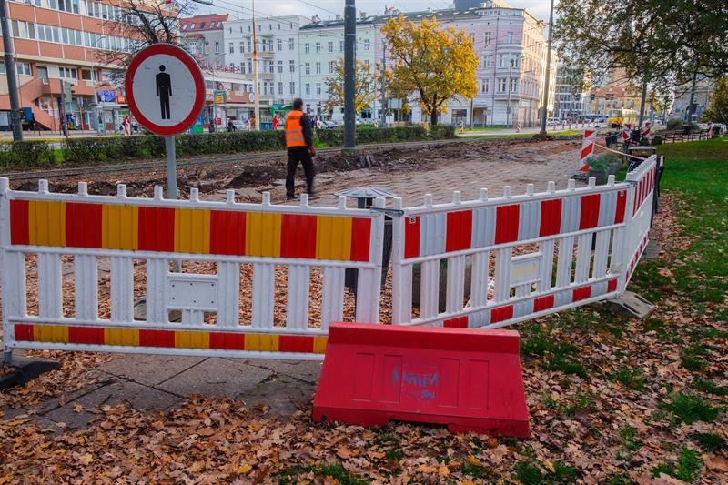W szybkim tempie znika stara infrastruktura tramwajowa w obrębie szczecińskiego pl. Zwycięstwa i na odcinku dochodzącej doń ul. Bolesława Krzywoustego. Podczas gdy od strony nieczynnych teraz przystanków Brama Portowa trwają jeszcze ostatnie prace rozbiórkowe, to z drugiego końca w jezdni przebudowywanego fragmentu pasa w ul. Bolesława Krzywoustego układane są już nowe szyny i termitowo spawane.