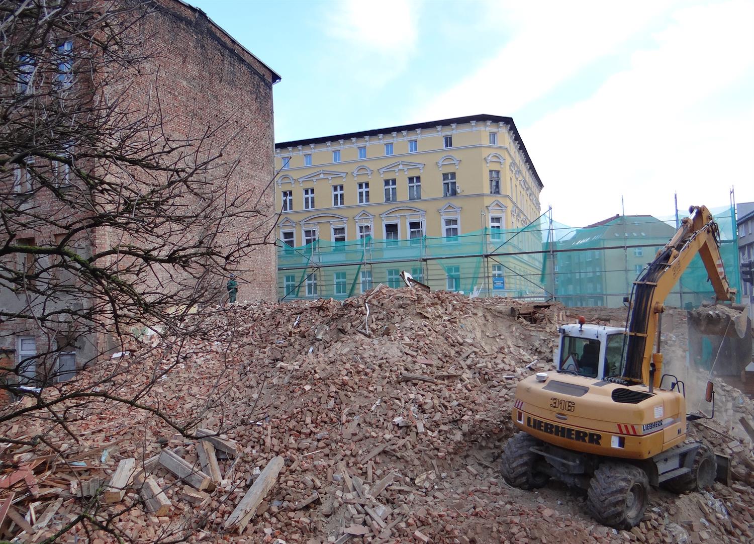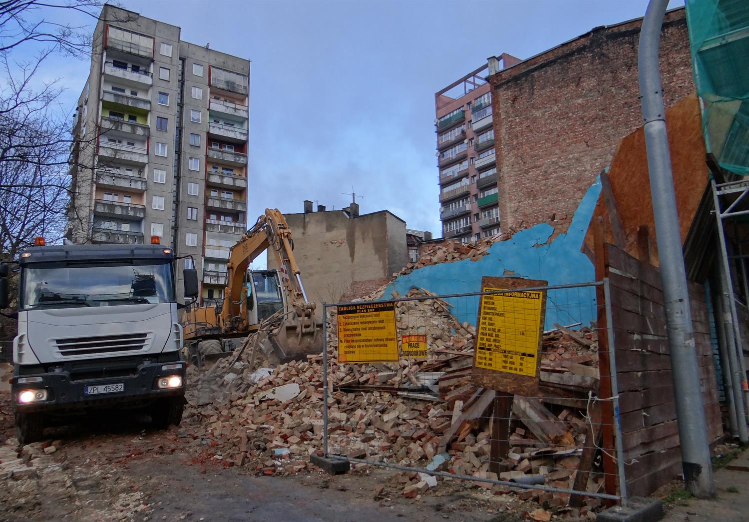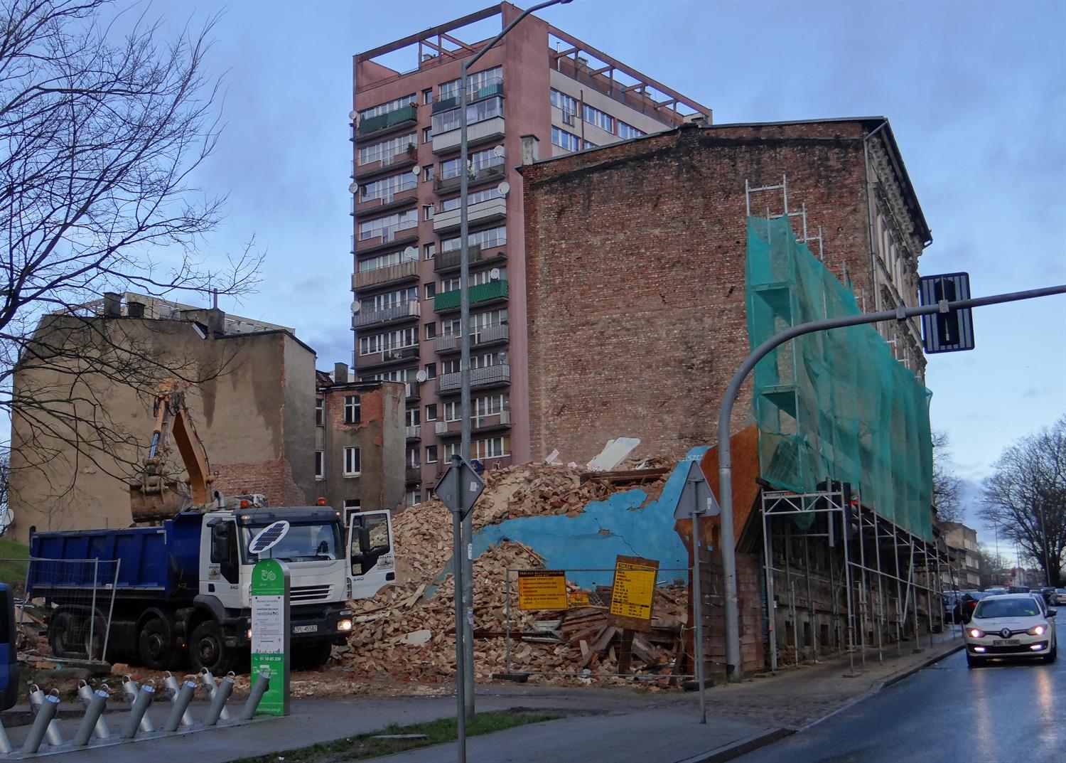 Tylko w jednym przypadku Zarządowi Budynków i Lokali Komunalnych udało się sfinalizować zamówienie na wyburzenia, czyli od etapu wyboru ofert przez podpisanie umowy po rozbiórkę. Własnie na kamienicę z przybudówką przy ul. Zygmunta Krasińskiego 97. Wykonawcą jest policki TRANSTAD Tadeusza Wołczeckiego. Na rozbiórki pozostałych czterech budynków w w jej sąsiedztwie chętnych też nie brakowało, a ZBiLK wybrał w ogłoszonym przez siebie przetargu do tych robót nawet wykonawcę, uznając za najkorzystniejsze w każdym przypadku oferty cenowe VMG Polska z Warszawy. I na tym się skończyło.