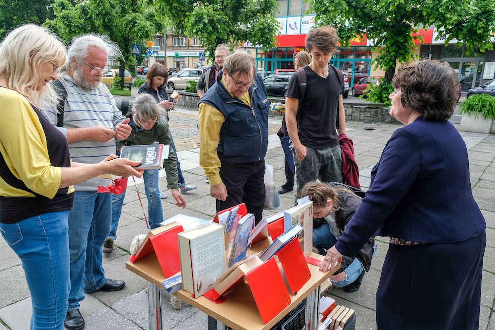Pracownicy Miejskiej Biblioteki Publicznej w Szczecinie oraz wolontariusze ze Szczecińskiego Humanistycznego Uniwersytetu Seniora rozdawali na placu Lotników książki. Zrobili to z okazji Ogólnopolskiego Święta Wolnych Książek. Jak widać, chętnych do włączenia się w akcję bookcrossingową nie brakowało.
