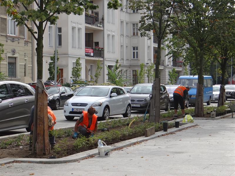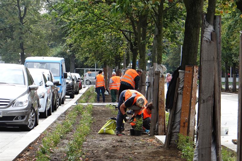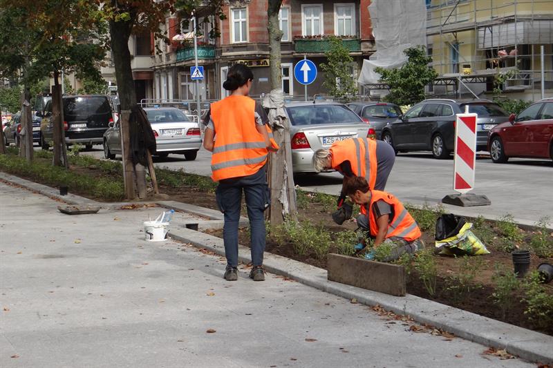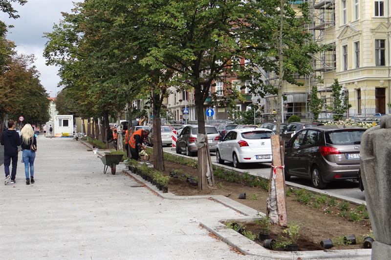 Trwa wymiana zieleni na przebudowywanym odcinku szczecińskiego „Złotego Szlaku". Po laurowiśniach wschodnich, w sobotę (11 września) na pasie zieleni - pomiędzy pl. Grunwaldzkim a ul. Wielkopolską - w cieniu lip rozpoczęto sadzenie róż okrywowych. Zgodnie z projektem inwestycji: „Nasadzenia zaprojektowano w systemie pasowym, aby zachować harmonię oraz podkreślić reprezentacyjność miejsca".