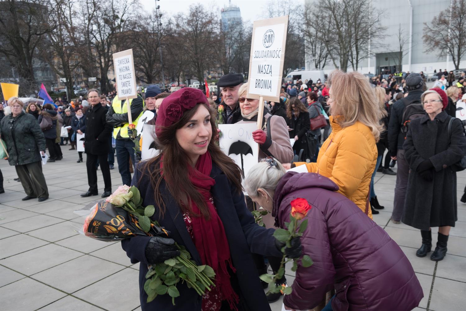 - Czarny protest chcemy uczynić tęczowym - stwierdził Krzysztof Rudzki z Młodzieży Wszechpolskiej, który z grupą znajomych przyszedł w środę na plac Solidarności w Szczecinie z trzystoma różami.