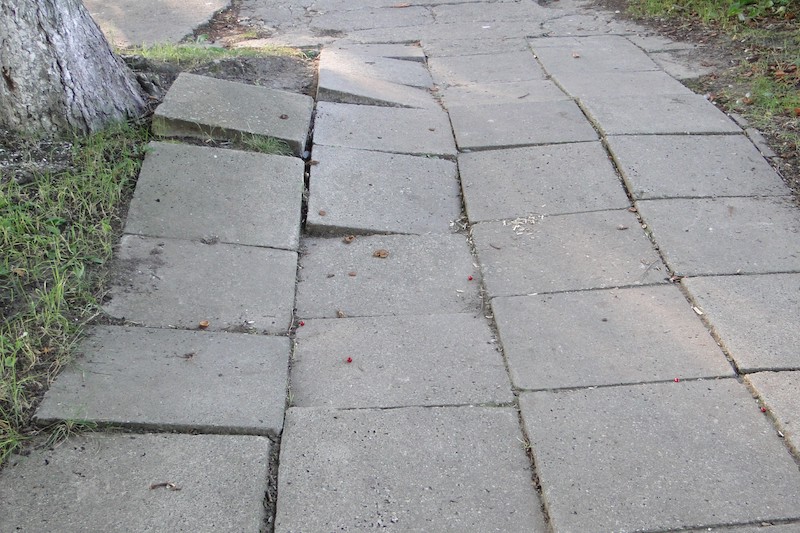 Przejście wyboistym chodnikiem przy ul. Sportowej w Gryfinie nie jest łatwe zwłaszcza dla osób starszych, z niepełnosprawnością ruchową, małych dzieci. Ale też i sprawni młodzi ludzie mogą potknąć się o nierówności występujące na całej długości pieszego ciągu. Płyty chodnikowe są bardzo zniszczone, w wielu miejscach popękane, wybrzuszone, ruchome, zapadnięte albo odstające od podłoża i to nie tylko w pobliżu drzew.