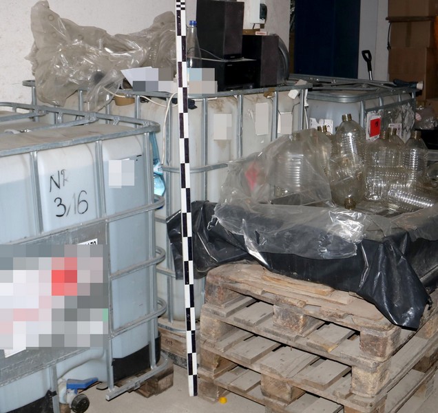 Funkcjonariusze zajęli kompletną linię technologiczną służącą do odkażania alkoholu: filtry, zbiornik do uzdatniania, pompę elektryczną oraz przyłącza, wkłady do filtrów oraz pojemniki z podchlorynem sodu.