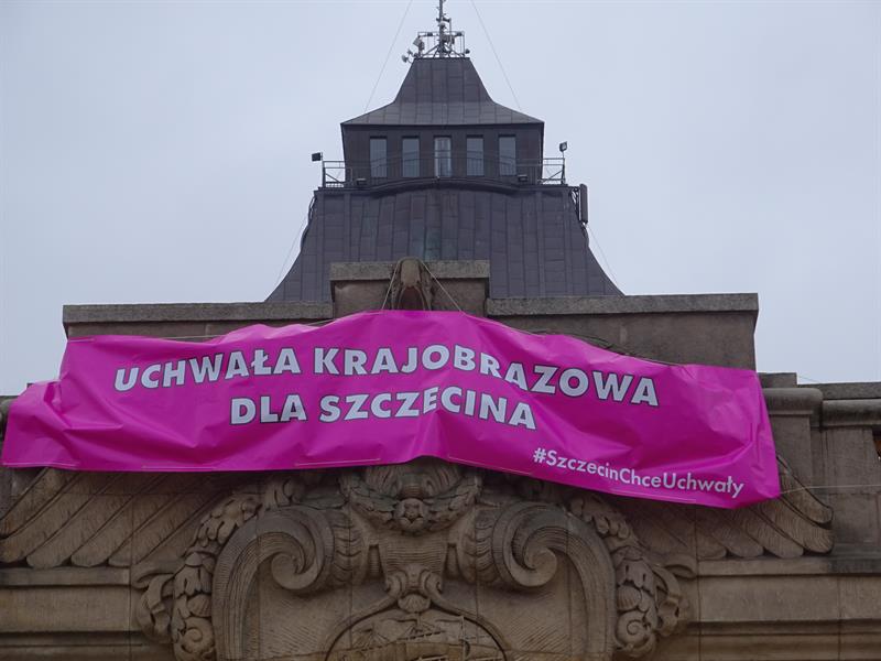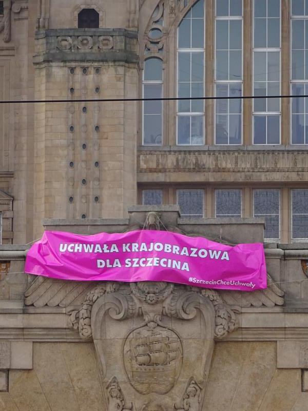 Różowy baner na Wałach Chrobrego. "Uchwała krajobrazowa dla Szczecina"