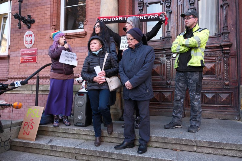 Przed gmachem sądu czekało kilka osób, które ją wspierają. Marię Kubisę nazywają bohaterką. Wyrażali zdziwienie, ze lekarka wciąż jest oskarżona, mimo że zmieniła się władza.