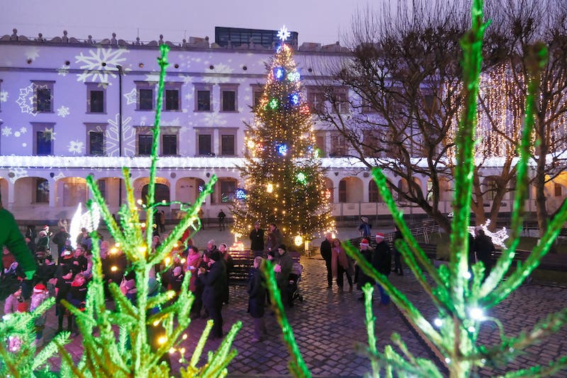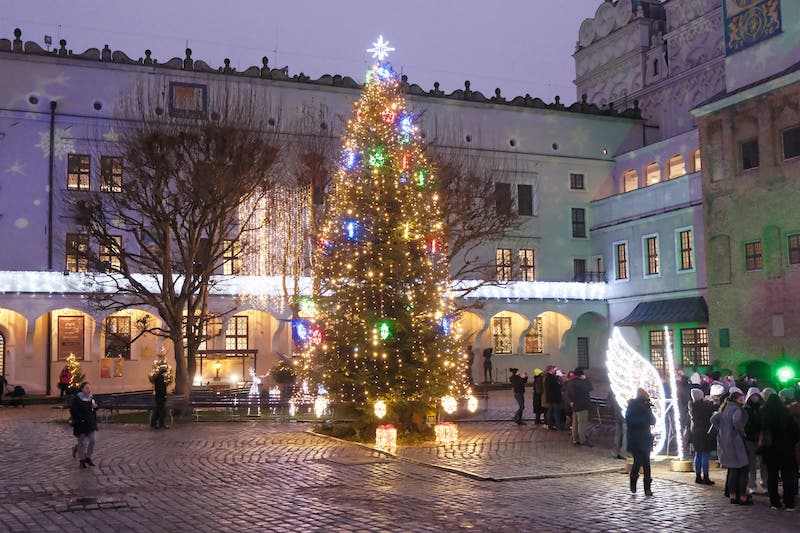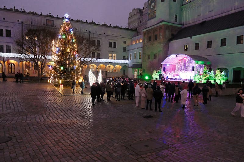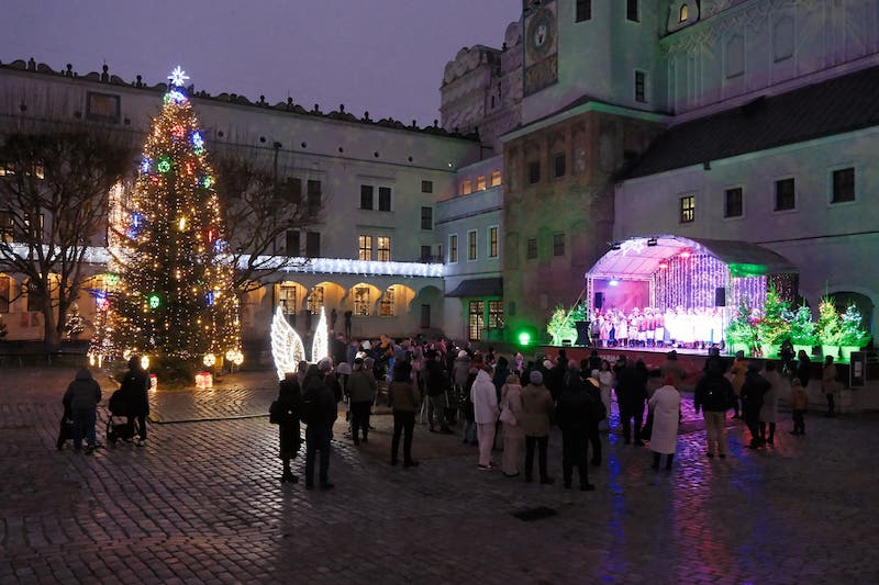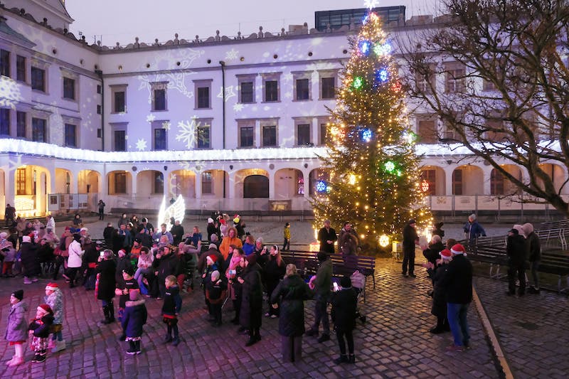 W piątek 6 grudnia na dziedzińcu Zamku Książąt Pomorskich w Szczecinie rozbłysła wielka choinka. Wydarzenie uświetnił występ Zespołu Pieśni i Tańca Szczecinianie. A bardzo, bardzo świątecznie będzie na zamkowym dziedzińcu już za tydzień - w sobotę i niedzielę 14 i 15 grudnia zamek zaprasza na Jarmark Bożonarodzeniowy.