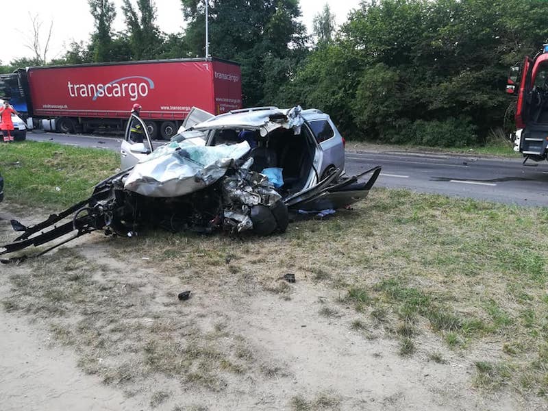 Widzę że w komentarzach same asy, passat wyprzedzał tira na łuku drogi nie zdążył się schować i wywalił w bok tira jadącego z polic, siła była tak duża że osobówka wyleciała w powietrze i wylądowała na trawniku przy drodze, niema tu znaczenia prędkość, czy kultura jazdy a ignorowanie podwójnej ciągłej i nie wyprzedzania na zakrętach lub łukach drogi, Bogumińska w ogóle jest drogą dosyć zdradliwą zakręty pagórki i przejścia dla pieszych