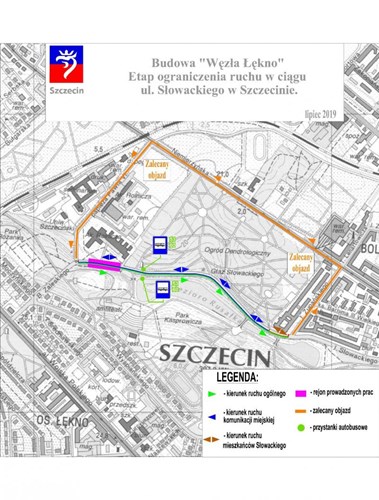 Od piątku (12 lipca) po popołudniowym szczycie komunikacyjnym wprowadzone zostaną w Szczecinie kolejne zmiany w organizacji ruchu w związku z pracami przy budowie węzła Łękno, a konkretnie budową nowej kanalizacji deszczowej. Tym razem na ul. Juliusza Słowackiego. Wykonawca deklaruje, że z robotami na tym odcinku upora się do końca sierpnia.