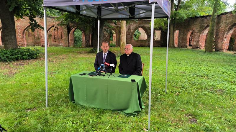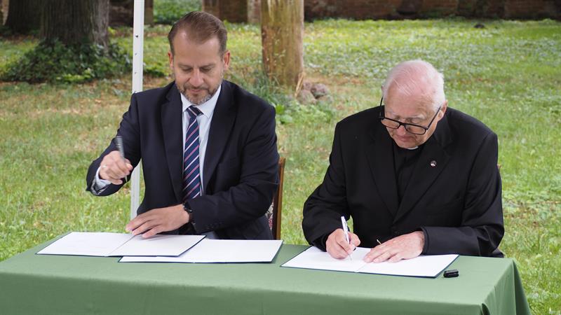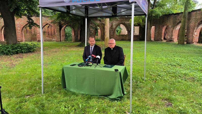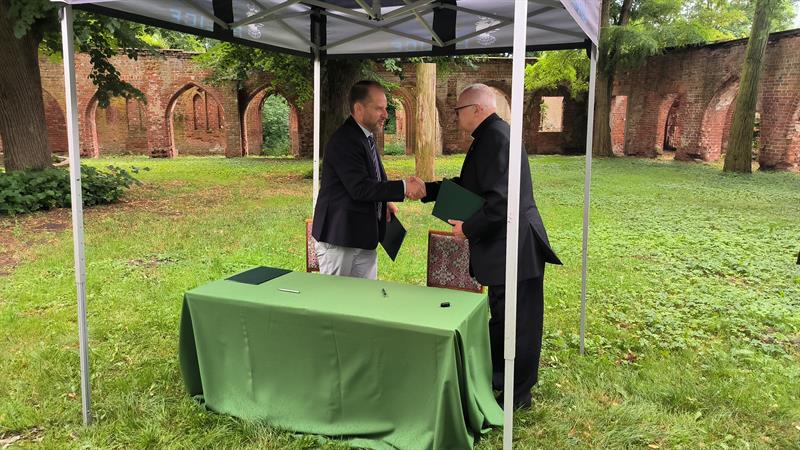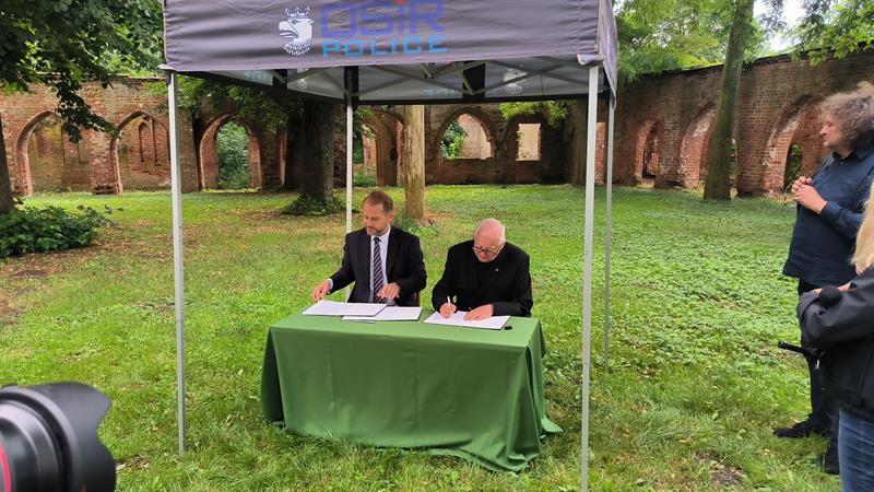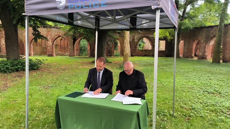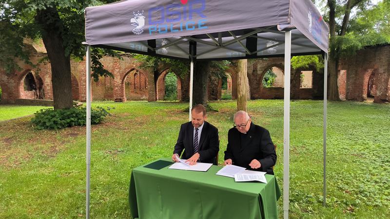 We wtorek (2 lipca), w otoczeniu właśnie ruin klasztoru augustianów w polickiej Jasienicy, umowę dotyczącą finansowania prac konserwatorskich podpisali burmistrz Polic Krystian Kowalewski oraz ks. Waldemar Szczurowski.