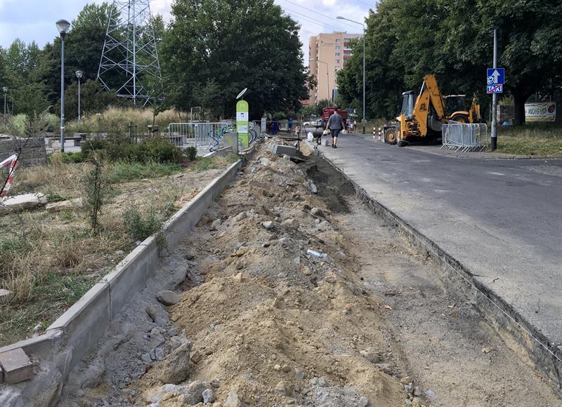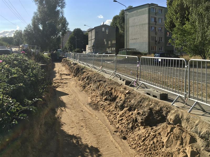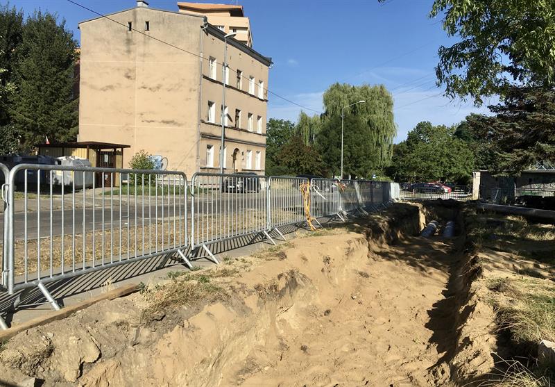 Wykonawcą jest firma Isolplus Polska Sp. z o.o. z Katowic, a podwykonawcą firma Santech Sp. z o.o. Wykopy powodują utrudnienia w ruchu z powodu niezbędnych zwężeń na jezdni i fakt, że nowe rury układane są w pasie pobocza, co oznaczało konieczność całkowitego wyeliminowania ruchu pieszych od strony skarpy wzdłuż położonego poniżej Stawu Brodowskiego. Tam, gdzie prace już się zakończy, odtwarzana jest nawierzchnia chodników, jak choćby od strony skrzyżowania z pobliską ul. Wilczą. W tych miejscach, gdzie znajdują się schody prowadzące nad Staw Brodowski, przez rozkopane pobocza przerzucone zostały tymczasowe kładki dla pieszych.