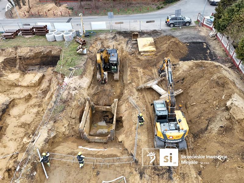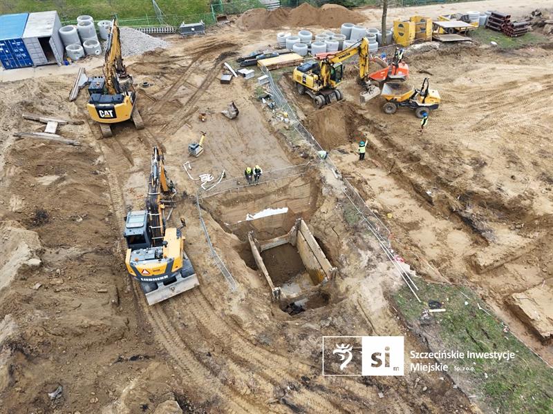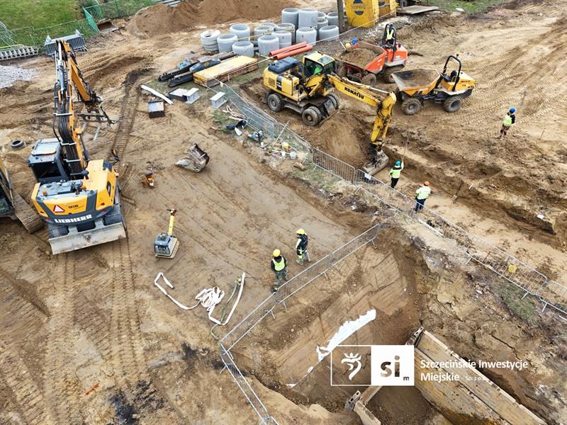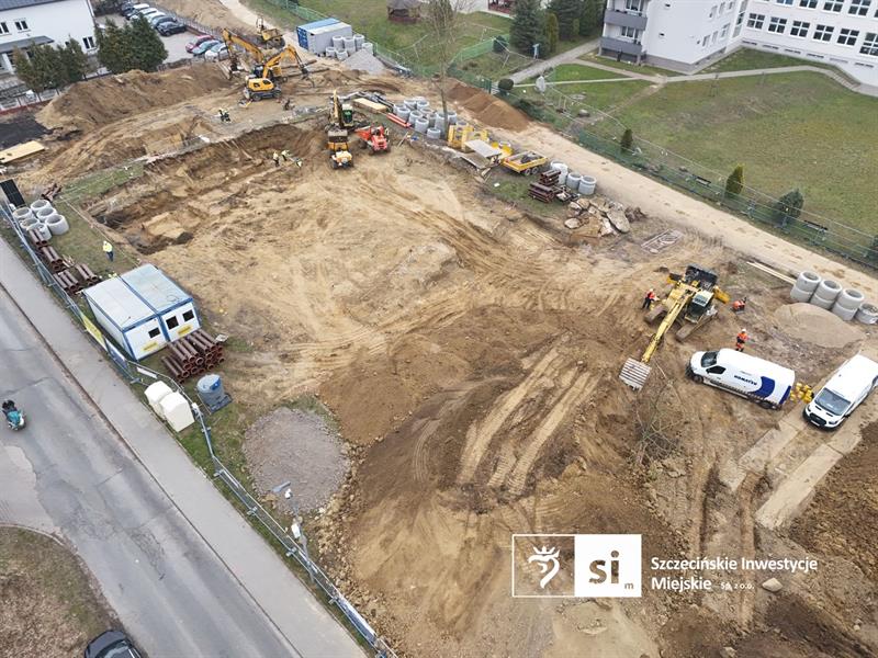 Wykonywana jest makroniwelacja terenu przed rozpoczęciem właściwych prac budowlanych związanych z przygotowaniem fundamentów. Równocześnie trwają prace sieciowe i przyłączeniowe, które zapewnią niezbędną infrastrukturę dla przyszłego żłobka.
