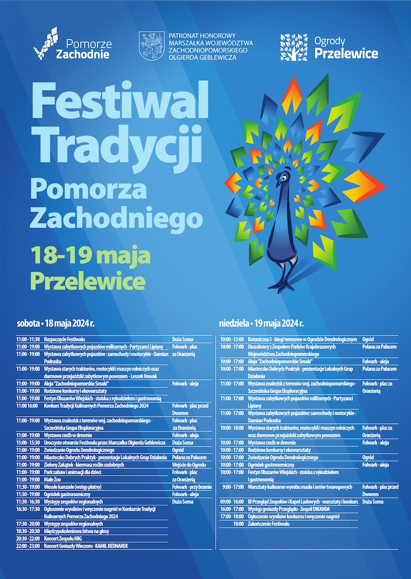 Prezentacja bogactwa kulturowego, tradycji kulinarnych, rękodzieła, rzemiosła i aktywności mieszkańców regionu. Trzecia Edycja Festiwalu Tradycji Pomorza Zachodniego odbędzie się w dniach 18-19 maja br. w Ogrodach Przelewice – Zachodniopomorskim Centrum Kultury Obszarów Wiejskich i Edukacji Ekologicznej.