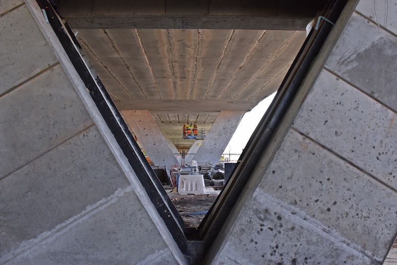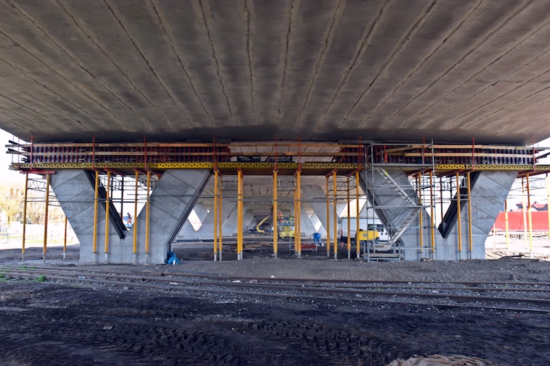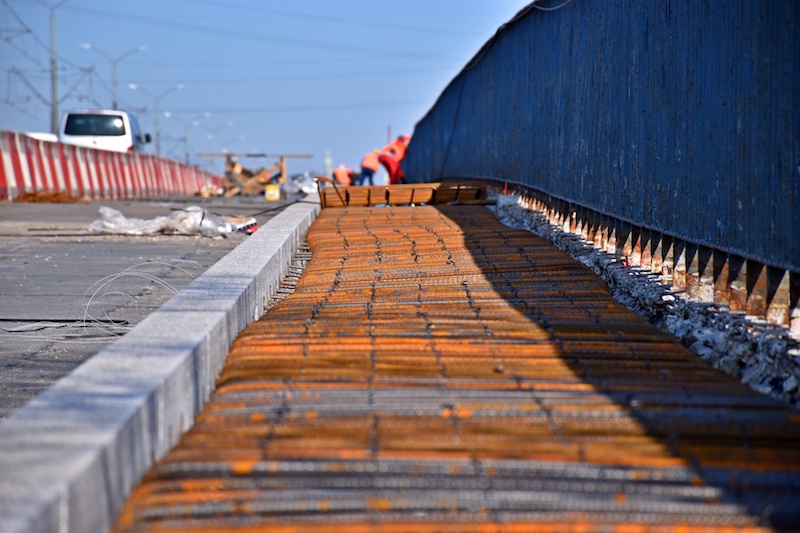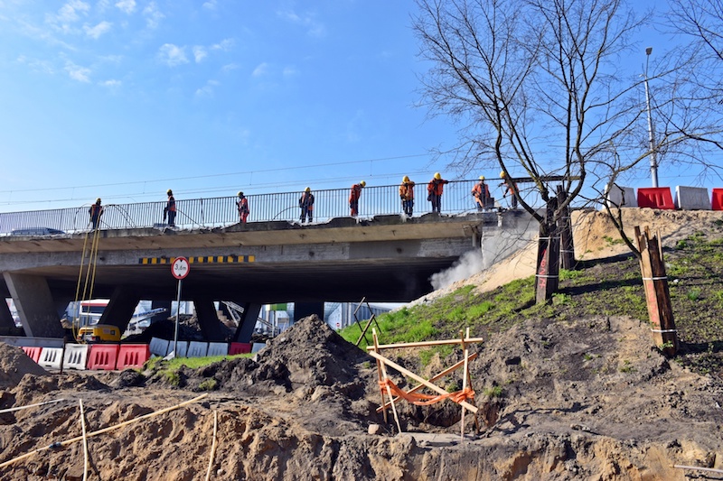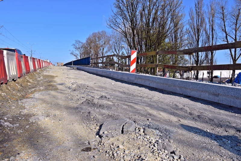 W ramach robót mostowych, prace prowadzone są na jezdni północnej i południowej estakady. Na jezdni północnej ułożono nową izolację; zamontowano dylatacje; prowadzone są prace przy prefabrykacji zbrojenia dla kap chodnikowych; betonowane są kapy chodnikowe; trwa ustawianie krawężników. Na jezdni południowej oczyszczono powierzchnie betonowe; zamontowano dylatacje; wykonano zbrojenie i betonowanie warstwy wyrównawczej; przystąpiono także do reprofilacji i gruntowania powierzchni betonowej pod nową izolację.