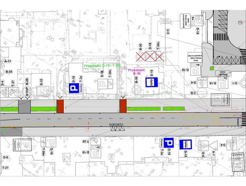 Nowością dla kierowców są zastosowanie na tablicach objazdowych piktogramy figur geometrycznych „trójkąta” i „kwadratu” w kolorze niebieskim, mające ułatwiać orientację w objazdach. Ten główny prowadzi al. Wojska Polskiego do skrzyżowania z ulicami Niedziałkowskiego i Mickiewicza i z powrotem również al. Wojska Polskiego do pl. Szarych Szeregów. Ten zalecany poprowadzony jest od. pl. Odrodzenia ulicami Monte Cassino, Niedziałkowskiego, dalej al. Wojska Polskiego, z nawrotem na skrzyżowaniu z ul. Felczaka i dalej al. Wojska Polskiego do pl. Szarych Szeregów.