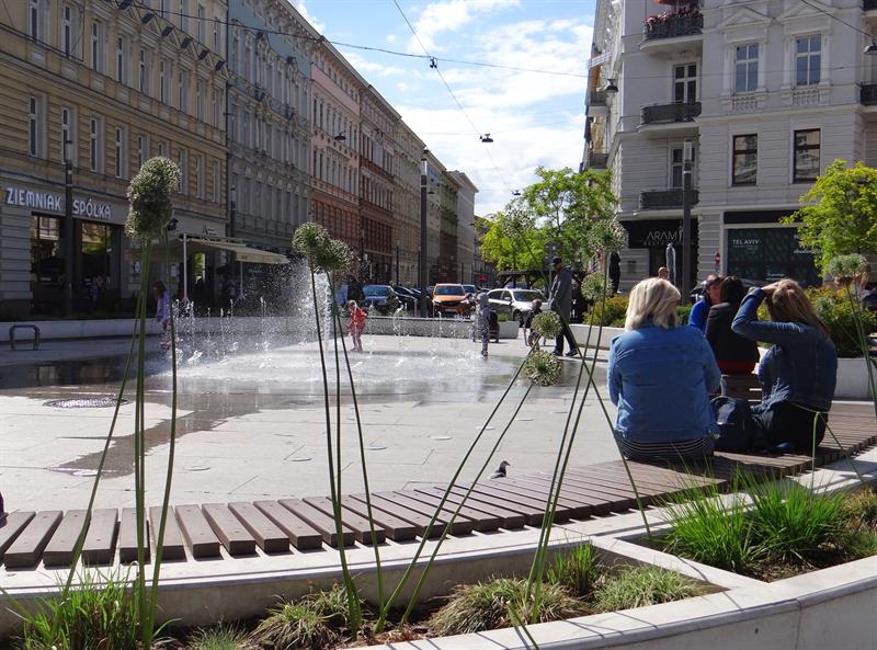 pomyślcie trochę, przy takich projektach. Pod nogami macie suche betonowe klepisko,a za plecami kępki traw, które mogą liczyć jedynie na krople deszczu, którego niestety coraz mniej. Przecież ten skwer można uczynić dużo bardziej zielonym.