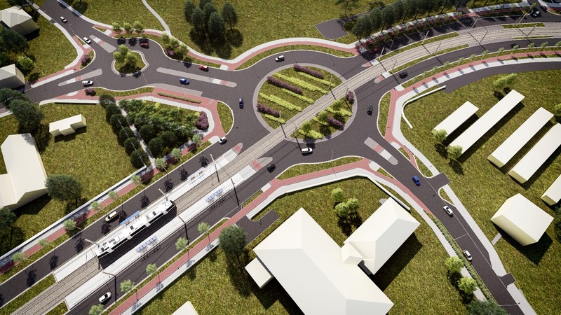 Oprócz robót drogowych firma ułoży też dwukierunkowe torowisko tramwajowe w pasie rozdzielającym jezdnie oraz wybuduje pętlę tramwajowo-autobusową przy hali widowiskowo-sportowej z czterema torami przy peronach tramwajowych i peronie autobusowo-tramwajowym oraz ze stanowiskami postojowymi dla autobusów.