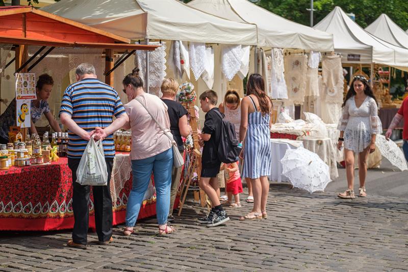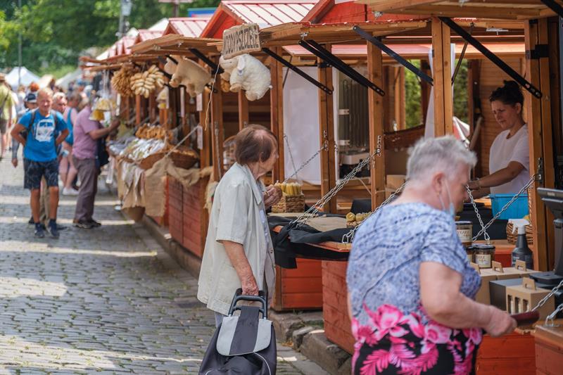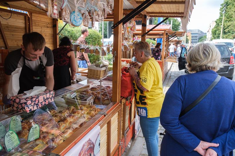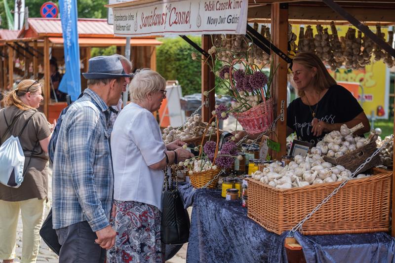 Czego tu nie ma! Na straganach wystawiono przysmaki - chleby, sery, tradycyjne wędliny, wina, nalewki, miody, orzechy, chałwy, oliwki, herbaty, zioła, przyprawy. Są ozdoby, ceramika, biżuteria, koronki z Koniakowa, ubrania, wiklina, kosmetyki, ekologiczne poduszki z łuską orkiszową albo gryczaną, nawet pierniki i bombki! Na miejscu można zjeść szaszłyki, kiełbaski z rusztu, podpłomyki, pieczone ziemniaki, kuszą kołacze z lodami, poncz, lokalne browary.