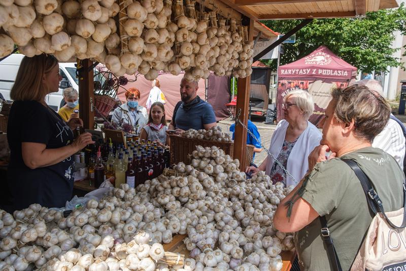Szósty raz na jarmarku wystawia produkty francuz Gilles. Sprzedaje mydła z Marsylii. Można u niego kupić na przykład mydło ze śluzem ślimaka. Po raz siódmy przyjechał tu z Podkarpacia Wawrzyniec Maziejuk z Rodzinnego Gospodarstwa Ekologicznego Figa.