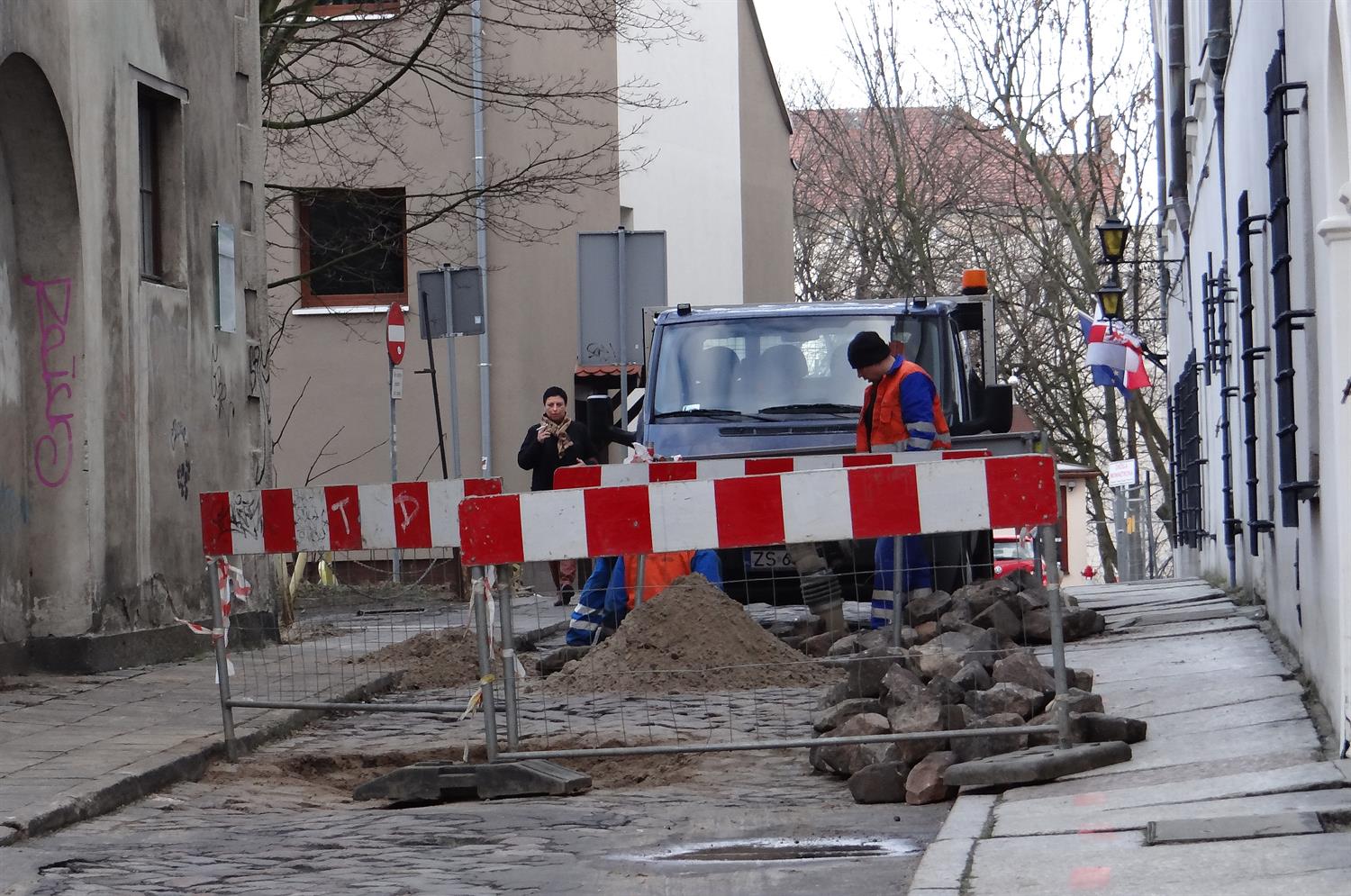 Po awarii wodociągu pod jezdnią jednokierunkowa ul. Rycerska w Szczecinie nadal nie jest przejezdna dla samochodów od Zamku Książąt Pomorskich do skrzyżowania z ul. Kuśnierską. Blokada pozostanie jeszcze w czwartek co najmniej przez kilka godzin. Trwają tam teraz prace porządkowe m.in. przy uzupełnianiu w miejscu wykopu podbudowy jezdni i układaniu nawierzchni z kostki brukowej.
