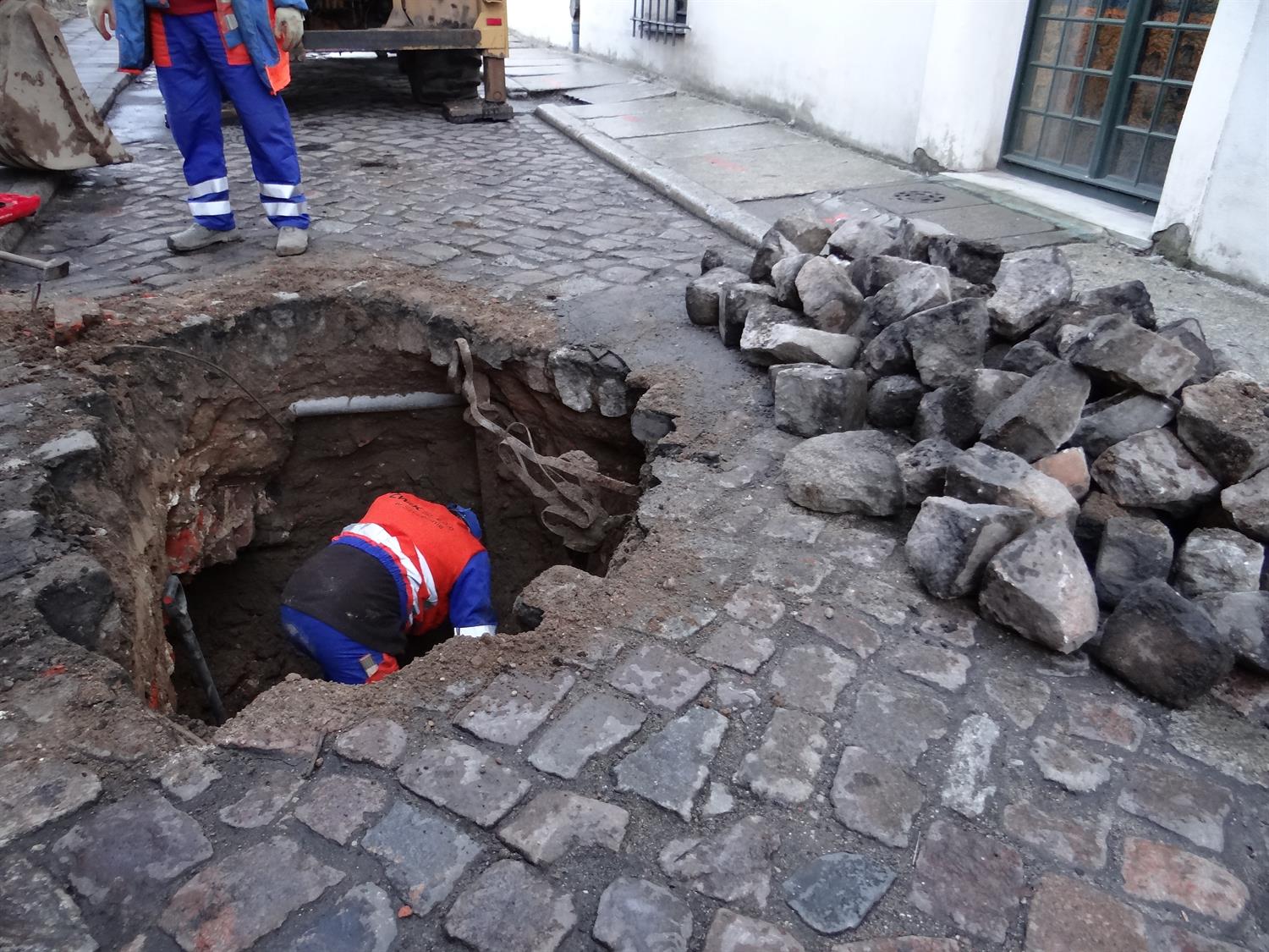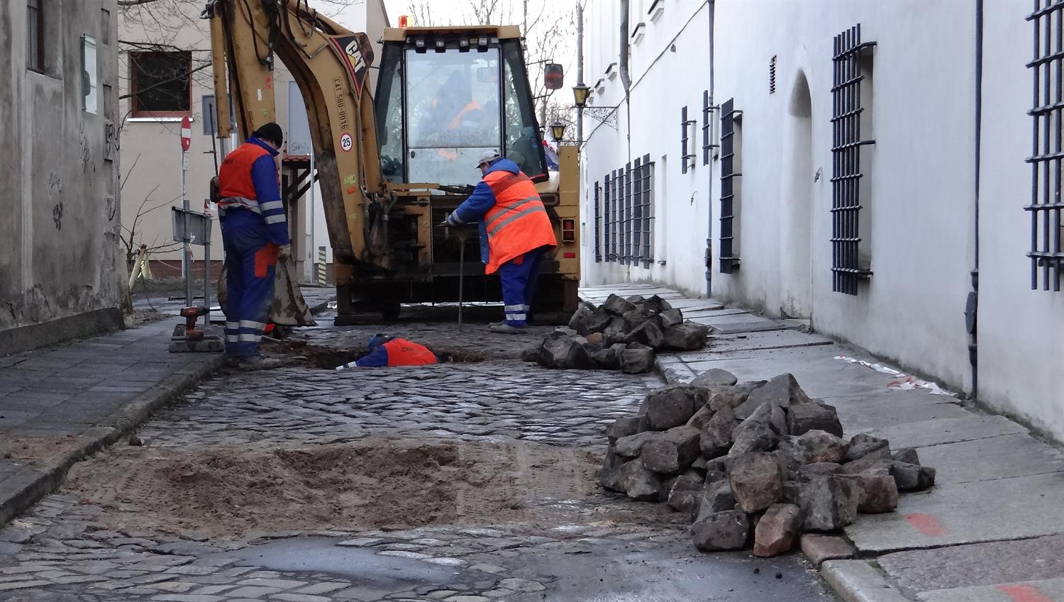 Po naprawie przez brygadę Pogotowia ZWiK uzupełniona została podsypka także instalacji kanalizacyjnej i zagęszczona. W czwartek od rana odtwarzany jest fragment podbudowy jezdni, by można ponownie wyłożyć jej nawierzchnię kostką brukową. Roboty powinny zakończyć się do godz. 15. ©℗