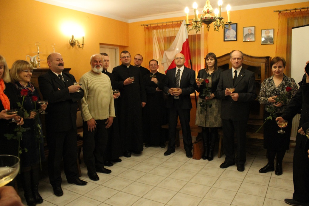 Po liturgii w refektarzu domu parafialnego odbyło się okolicznościowe spotkanie, które rozpoczęło się od modlitwy i odśpiewania hymnu państwowego. W czasie spotkania wielki rycerz, czyli kierujący pracami rady Jan Kołoszycz przybliżył historię kształtowania się organizacji w Pyrzycach. Był również czas na wspomnienia i rozmowy w gronie znajomych. Na obchody przybyli także rycerze z Suchania i Morynia.