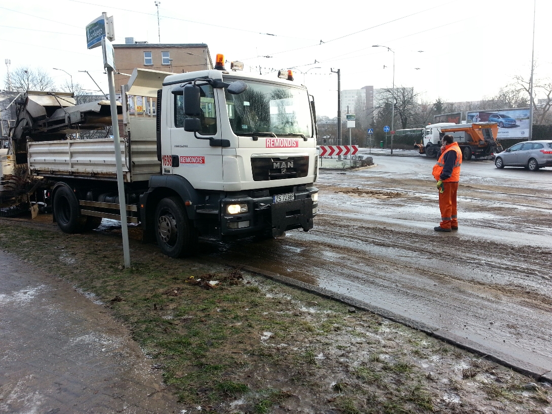 Ekipy Pogotowia ZWIK-u mają zająć się usunięciem awarii. Trwa sprzątanie. Ruch samochodów jest nadal ograniczony, tramwaje linii 8 i 10 wróciły już na trasę do Gumieniec. Ruchem kierują patrole policji. Brygada spółki Remondis usuwa z jezdni zmarzlinę, w jaką zamieniła się woda wypływająca spod ziemi z pękniętej instalacji. Do awarii doszło nad ranem ok. godz. 6.30. ©℗