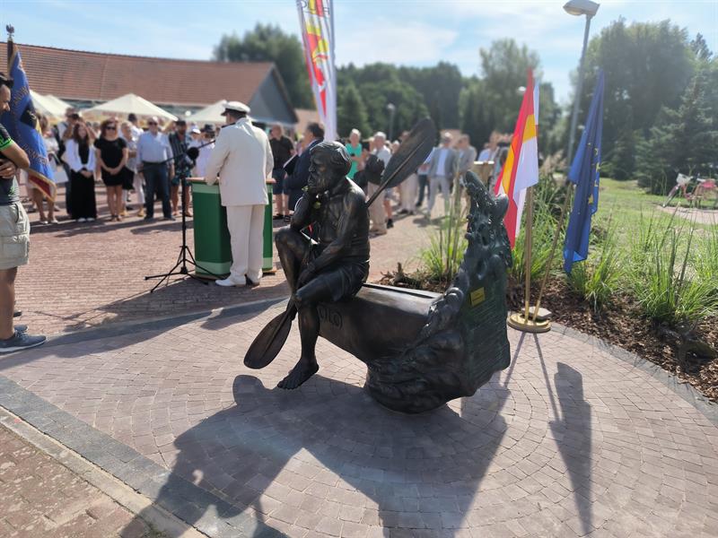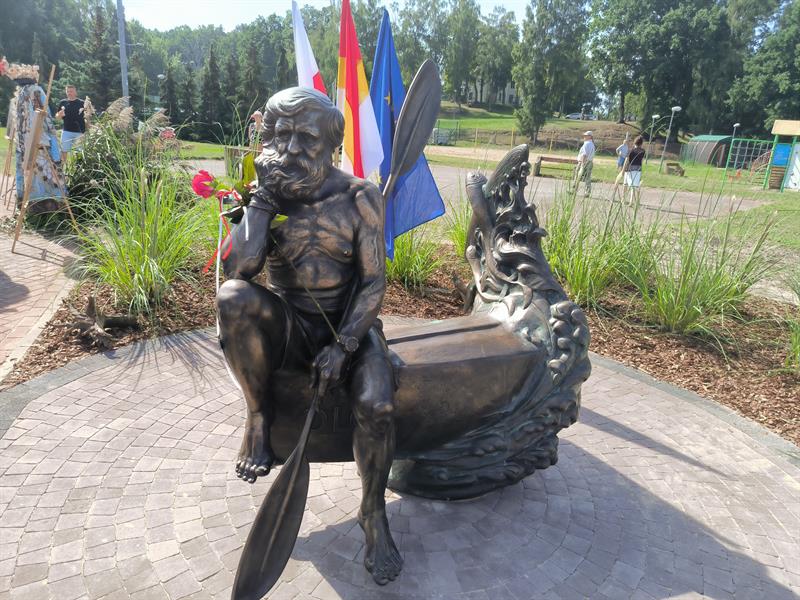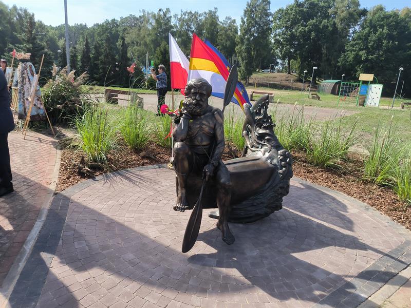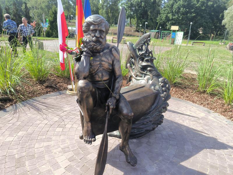 Rzeźba Aleksandra Doby stanęła w Trzebieży. Można posiedzieć obok sławnego podróżnika