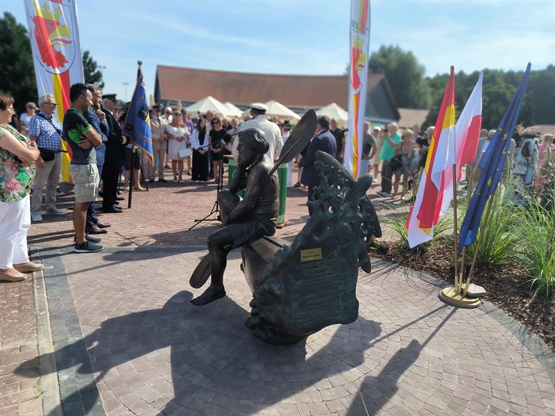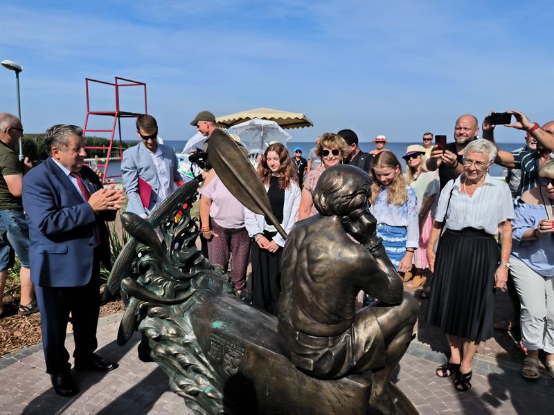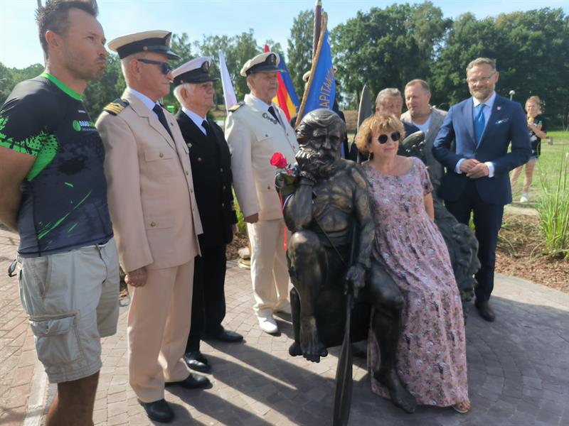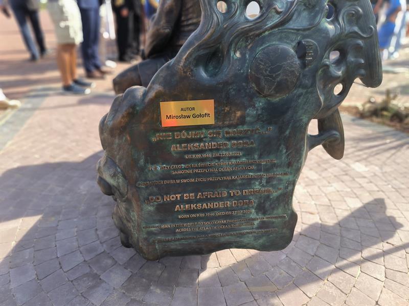- Ta piękna pogoda jest jakimś uśmiechem chyba do nas z góry od pana Aleksandra, bo przecież we wrześniu mogliśmy się spotkać w deszczu, wietrze. A spotykamy się w pięknej, słonecznej pogodzie i taką piękną, słoneczną postacią był pan Aleksander, myślę, że wszyscy go w ten sposób właśnie zapamiętaliśmy: jako człowieka niezwykle życzliwego, człowieka otwartego, uśmiechniętego, człowieka, który realizował swoje fantazje - mówił wojewoda, który odniósł się także do samej rzeźby upamiętniającej tego podróżnika. - To upamiętnienie, niezwykle piękne, bardzo ładnie oddające tę twarz, tę historię wyrytą na twarzy Aleksandra Doby. Pan burmistrz odnosił się do Neptunaliów, mówił, że to Neptun Polic, Szczecina, ambasador naszego regionu Pomorza Zachodniego. Tak, to Neptun. Tylko Neptun trzymał trójząb w dłoniach, pan Aleksander zawsze trzymał wiosło od kajaka. I tak jest przedstawiony tutaj.