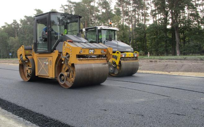 Na zdjęciu: Na budowanym odcinku drogi ekspresowej S6 między Goleniowem a Nowogardem położono już pierwsze warstwy nawierzchni – podbudowy bitumicznej.