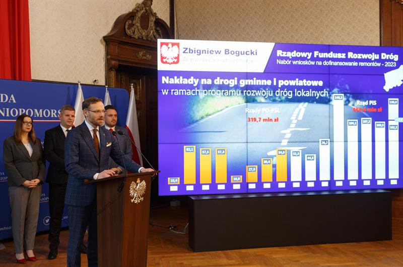 Podczas konferencji w Urzędzie Wojewódzkim nie zabrakło porównań do działań poprzedniego rządu. Z wyliczeń przedstawionych przez wojewodą wynikało, że w ciągu 8 lat rządów PO - PSL na drogi w województwie zachodniopomorskim przeznaczono 318 mln złotych, a w trakcie rządów Prawa i Sprawiedliwości - 664 mln zł. Według wojewody ta różnica jest spora, nawet jeśli weźmie się poprawkę na inflację, która daje nam się teraz mocno we znaki. Zdaniem wojewody PiS dostrzega problemy Polski lokalnej i stawia na zrównoważony rozwój kraju - nie tylko największych ośrodków.
