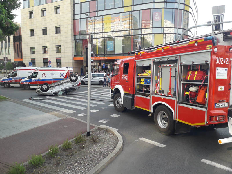 Po godzinie 17. w poniedziałek (16 lipca) dachowało auto przy pl. Żołnierza Polskiego, tuż przed Galerią Kaskada w Szczecinie. Na miejscu są wszystkie służby. Na razie nie wiadomo, czy ktoś został poszkodowany w wypadku. Według informacji policji, do dachowania auta doszło po zderzeniu z drugim pojazdem. Obecnie nieprzejezdna jest ulica Bałuki, a także zablokowana jest ulica Niepodległości w stronę Bramy Portowej.