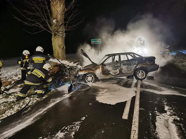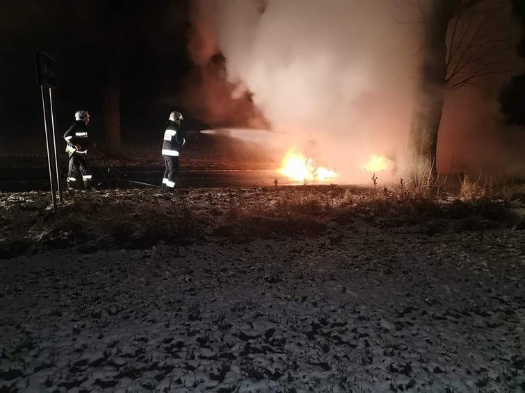 Do groźnego wypadku doszło w sobotę rano na drodze pomiędzy miejscowościami Nieżyn i Charzyno w powiecie kołobrzeskim. Samochód osobowy uderzył tam w drzewo i stanął w płomieniach.