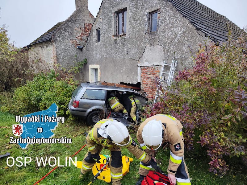 W miejscowości Jarzębowo (powiat kamieński) samochód osobowy wypadł na łuku z drogi i wbił się w budynek mieszkalny.