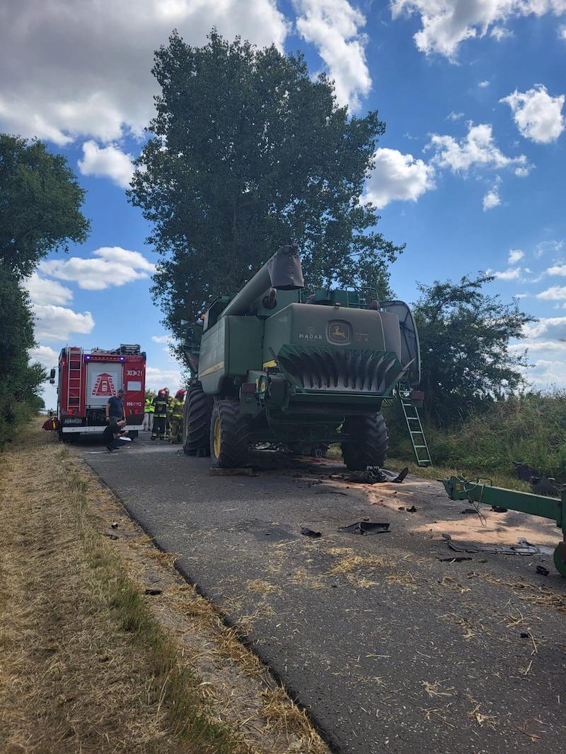 Tragedia w miejscowości Barnisław w powiecie polickim. Seat czołowo zderzył się z kombajnem. W wypadku zginął 18-latek kierujący osobówką.