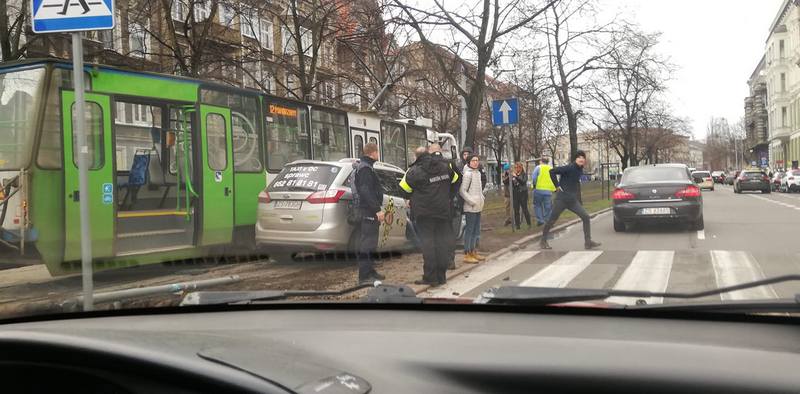 Do wypadku doszło przy placu Szarych Szeregów w Szczecinie. Samochód osobowy wjechał tam w tramwaj. Na razie nic nie wiadomo, czy ktoś został poszkodowany. Policja jest na miejscu.