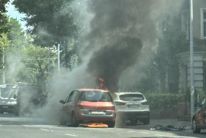 Do pożaru samochodu osobowego doszło w środę przed południem w al. Piastów w Szczecinie na odcinku między ul. Jagiellońska, a pl. Szarych Szeregów.