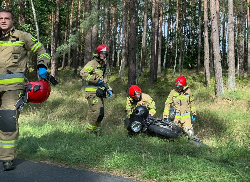 Do zderzenia samochodu osobowego z motocyklem doszło w niedzielę po południu na drodze wojewódzkiej nr 115 za Tanowem w kierunku Dobieszczyna.