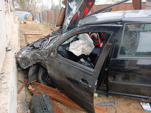 Do niebezpiecznego wypadku doszło w piątek w miejscowości Bobrowo w powiecie drawskim. Samochód wypadł tam z drogi, uszkodził transformator na jednym ze słupów elektrycznych, przebił się przez ogrodzenie i uderzył w ścianę domu mieszkalnego.