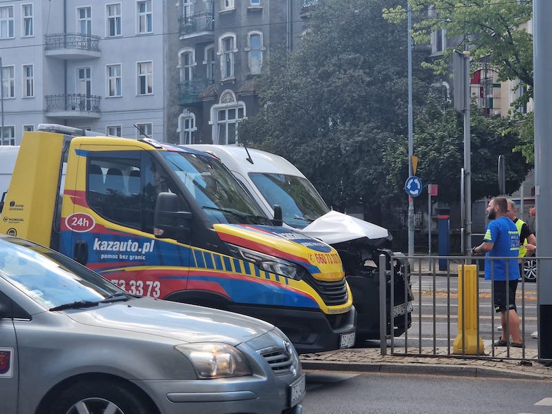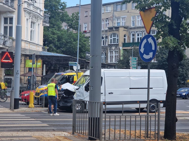 Cztery osoby wymagały pomocy medycznej po kolizji na pl. Odrodzenia w Szczecinie. Przed południem zderzył się tam samochód dostawczy z tramwajem linii 12.