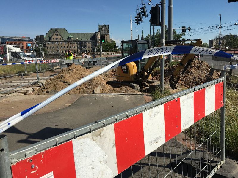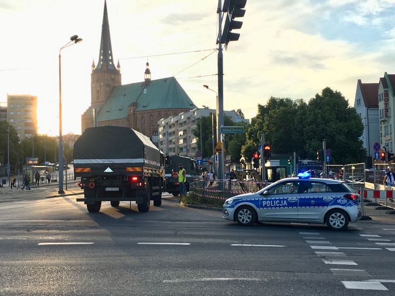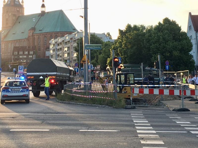 Służby rozpoczęły działania związane z wydobyciem i wywiezieniem znalezionego pocisku. O godz. 20.20 w rejon Nabrzeża Wieleckiego i Wielkiej Odrzańskiej podjechały dwa wozy saperskie. Policja zablokowała ruch. Na miejscu pracują patrole z kilkunastu radiowozów. Są też służby ZDiTM, które wstrzymują ruch komunikacji miejskiej w rejonie mostu Długiego.
