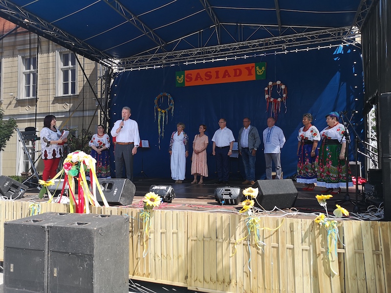 „Sąsiady”, czyli Trzebiatowskie Spotkania Kultur popularyzują tradycję, kulturę i historię ludności zamieszkującej gminę Trzebiatów. Odzwierciedlają wielokulturowy charakter regionu, w którym zamieszkują także mniejszości niemieckie i ukraińskie. Sobotnia impreza na terenie pałacu w Trzebiatowie tym razem obyła się bez udziału mniejszości niemieckiej, co zauważył przemawiający przybyły na nią konsul honorowy Ukrainy w Szczecinie Henryk Kołodziej.