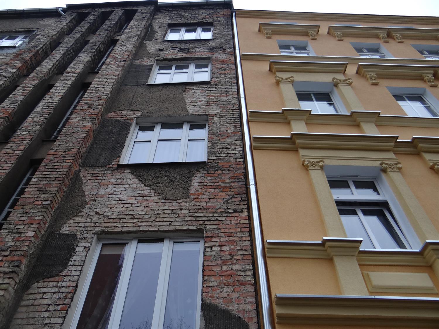 Jedna ulica, dwie kamienice, ściana i… jakby dwa światy po jej stronach.