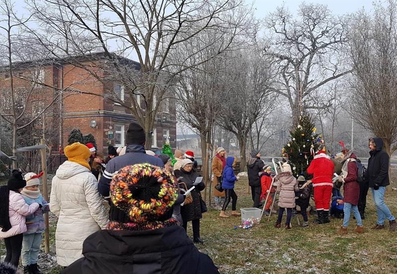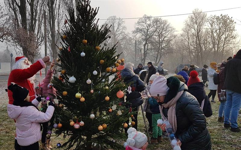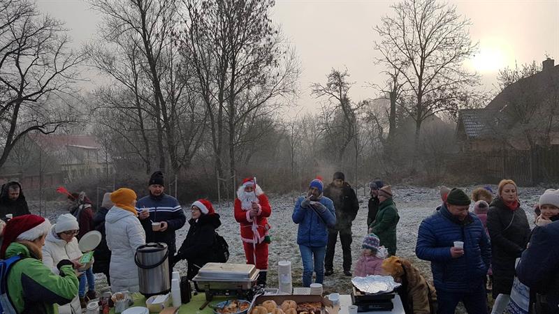 Przedświąteczne sąsiedzkie spotkanie to nie tylko ubieranie choinki, ale okazja do rozmów i złożenia sobie życzeń. Zawsze czeka też drobny poczęstunek. Mikołaj, w rolę którego wciela się pan Waldek ze Stowarzyszenia Feniks, rozdaje dzieciom małe upominki.