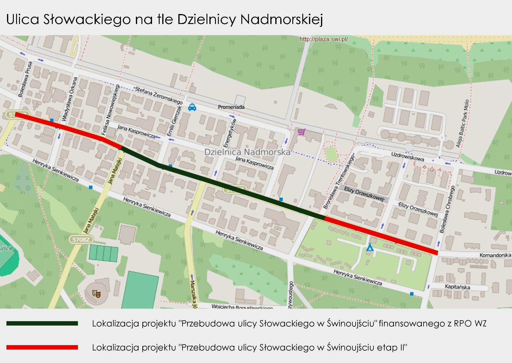 Świnoujście dostanie trzy miliony złotych dofinansowania w ramach tak zwanych schetynówek, czyli ministerialnego programu rozwoju gminnej i powiatowej infrastruktury drogowej na lata 2016–2019, na drugi etap przebudowy ulicy Słowackiego. To oznacza, że będzie już nie tylko przebudowany fragment od ulicy Matejki do Trentowskiego, ale cała ulica Słowackiego, od Prusa po Chrobrego.