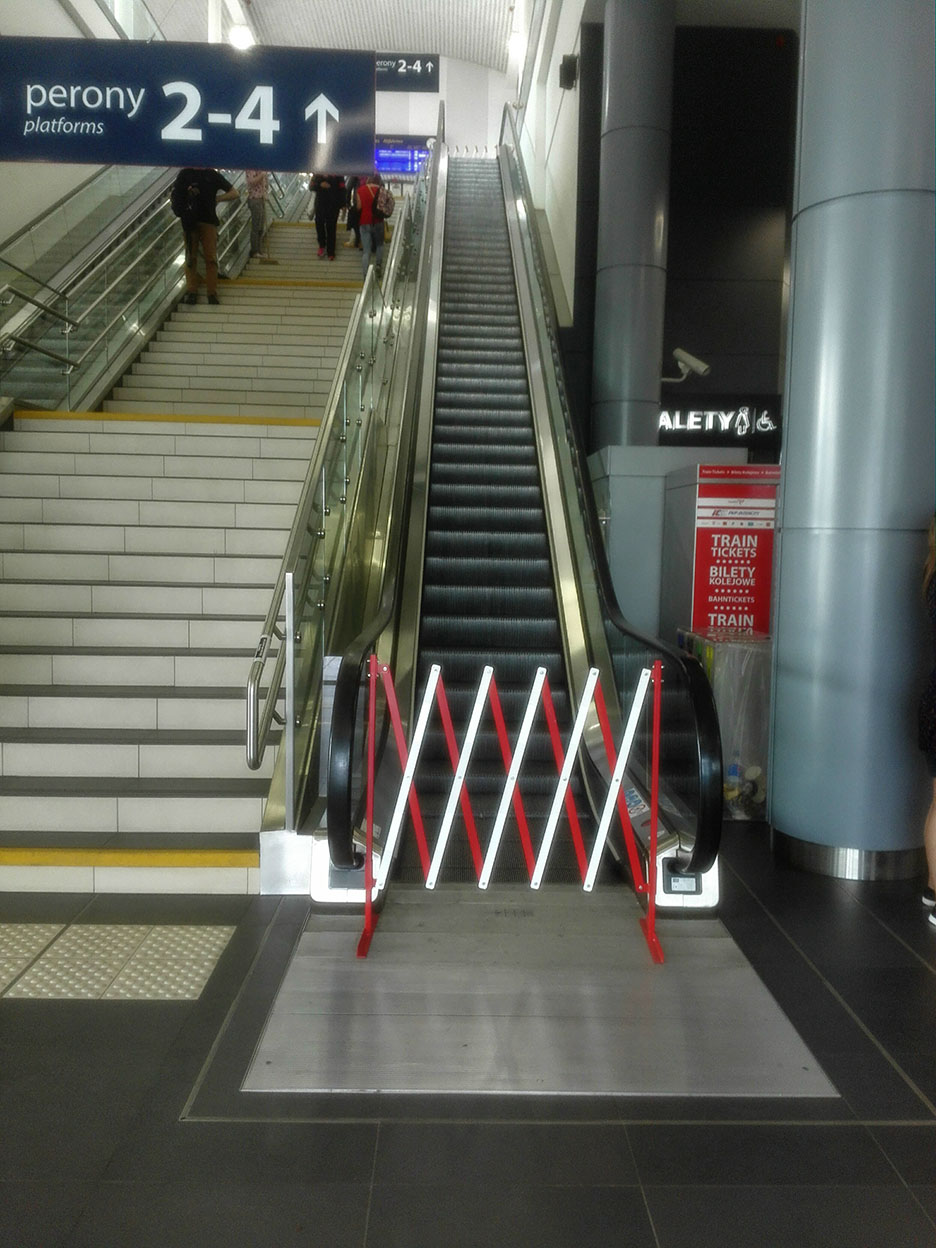 Kolejny dzień nie działają schody ruchome na kolejowym Dworcu Głównym w Szczecinie. Przed wejściami postawiono gustowne barierki w patriotycznych kolorach, ale jakoś marna to osłoda dla osób, które z ciężkimi bagażami w czwartek i w piątek musiały pokonywać wysokie podejście, prowadzące do łącznika między peronami. Cud techniki działał tylko przy zejściu na peron trzeci. Warto o tym pamiętać, planując podróż - bez silnego bagażowego możemy mieć kłopoty!