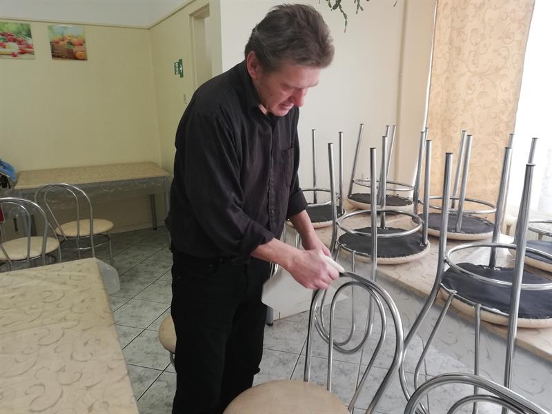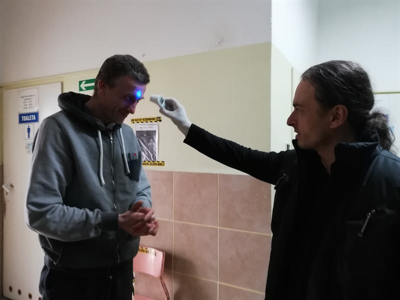 - Na początku była lekka panika - opowiada Arkadiusz Oryszewski. - Ktoś kaszlnął, a drugi mówił, że chce się wyprowadzić z pokoju, albo że zaraz umrze. Było jakieś ciśnienie, żeby uciekać nie wiadomo gdzie. A ja tłumaczyłem mieszkańcom, że to właśnie tu są bezpieczni, nie na mieście, w autobusie, czy w hipermarkecie, ale u nas. Od razu zaczęliśmy informować ich czym jest koronawirus, jaką ostrożność zachować. Na każdych drzwiach w każdym pokoju są informacje na ten temat. Uświadamiamy ludziom, że muszą o siebie dbać, zgłaszać nam wszelkie problemy ze zdrowiem. Mamy bezdotykowe termometry i codziennie o godzinie 21 sprawdzamy każdemu temperaturę. Co chwilę dostajemy jakieś wytyczne dotyczące takich obiektów jak nasze. Posiłki wydajemy w drzwiach stołówki, każdy ma własne pojemniki, sztućce, widelce i zjada obiad w swoim pokoju. W kolejce po posiłek staje się w odległości metra od innych. Nie ma odwiedzin. Wszelkie kontakt muszą być ograniczone, bo zaraza może być tu zawleczona. Nawet specjaliści: pracownicy socjalni, terapeuci, prawnicy teraz nie przychodzą. Z lekarzem jesteśmy głównie w kontakcie telefonicznym.