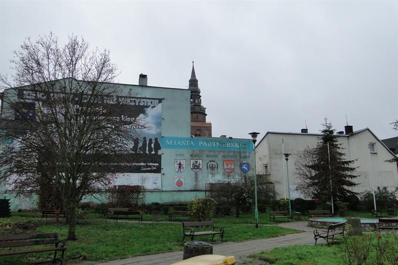 2- Idąc w dół ul. 1-Maja, od razu rzuca się w oczy brak elewacji na na budynku / jakieś 40 lat/ który sąsiaduje z Urzędem Miasta. Dochodząc do skrzyżowania z ul. Chrobrego uważaną za centralną arterię miasta, obracając się w koło zauważamy jak paskudne jest to miasto. Wstydem nie jest tylko ta ściana, wstydem jest cały ten kwartał od ul. Kościuszki do ul. Krzywoustego który powinien być oczyszczony z pawilonu dawnej Inter Mody i tych stojących za nią dwóch kamienic które są komunalkami ,