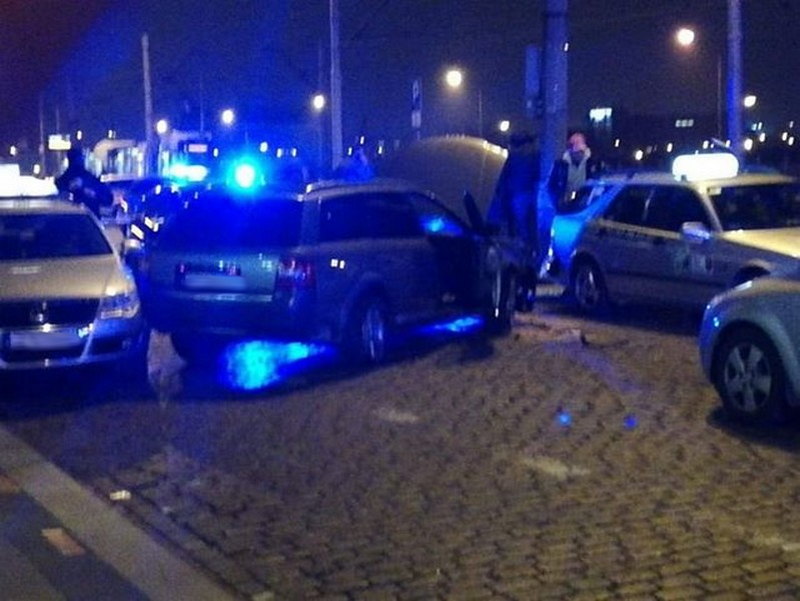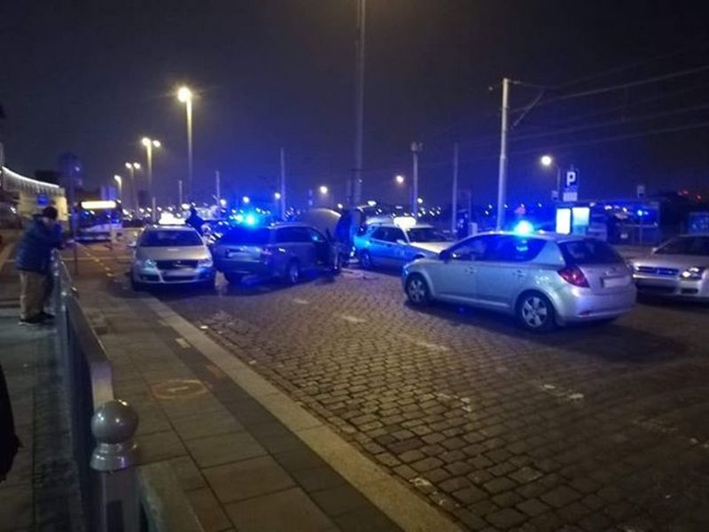 Uciekający wjechał w samochody zaparkowane przy dworcu PKP i tam został ujęty.