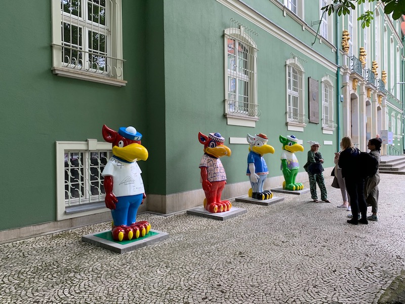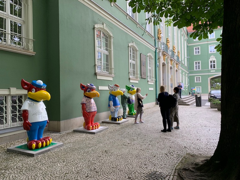 Figury Gryfusów będące pokłosiem niedzielnego happeningu "Pomaluj Gryfusa", który odbywał się w ramach obchodów 75. urodzin Szczecina, stały się atrakcją turystyczną pod Urzędem Miasta przy pl. Armii Krajowej.